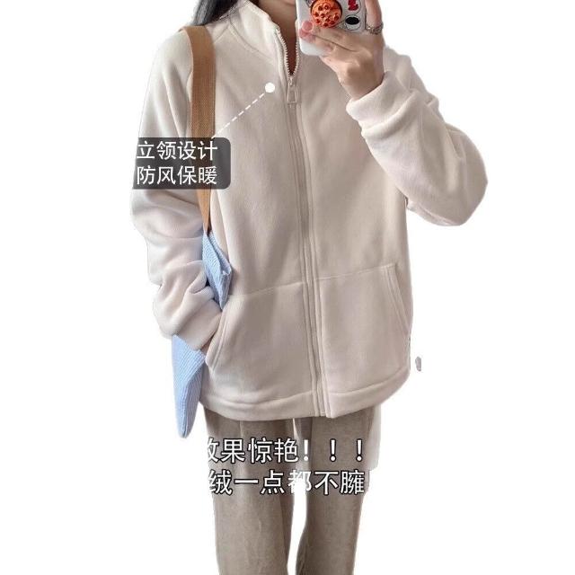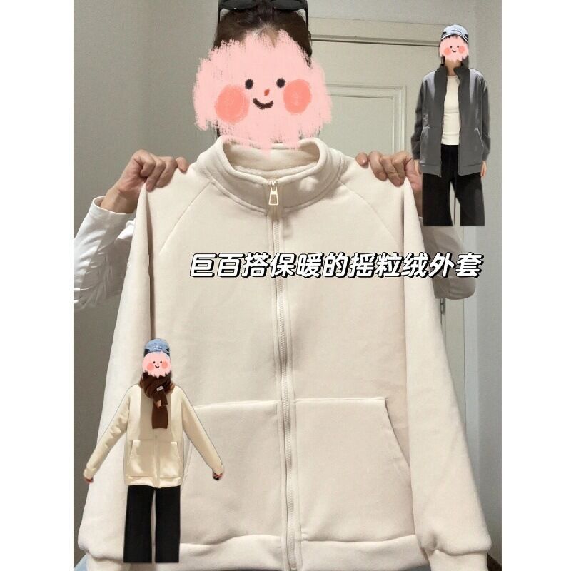 木槿衣坊 搖粒絨厚外套女2025新款秋冬羊羔絨內膽加絨校服神器內搭即墨衛衣 1