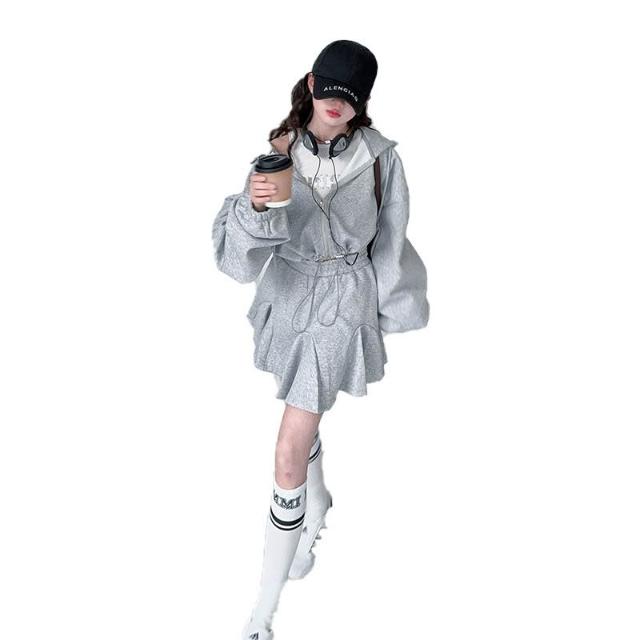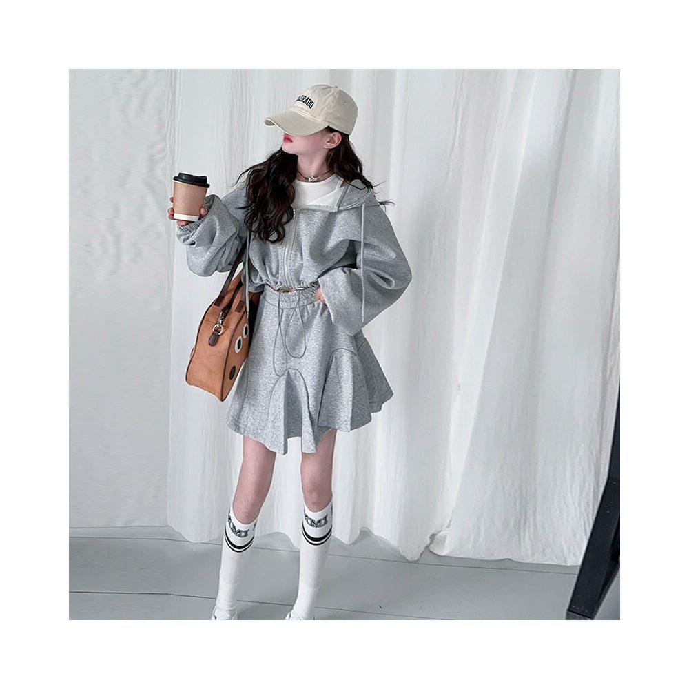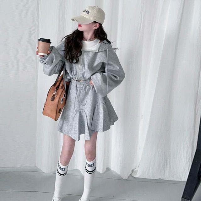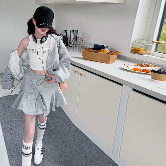 木槿衣坊 女童街舞服套裝2025新款兒童春秋連帽外套運動短裙百褶裙兩件套潮 23
