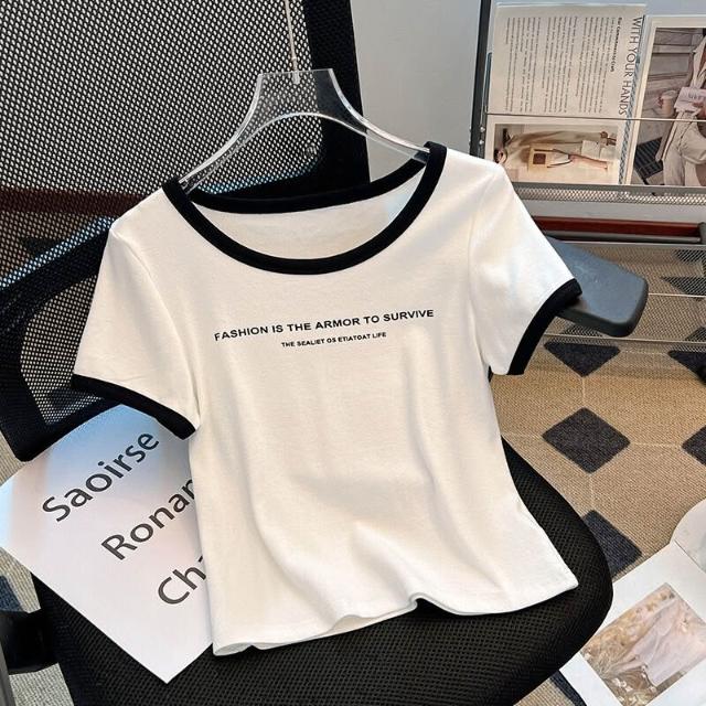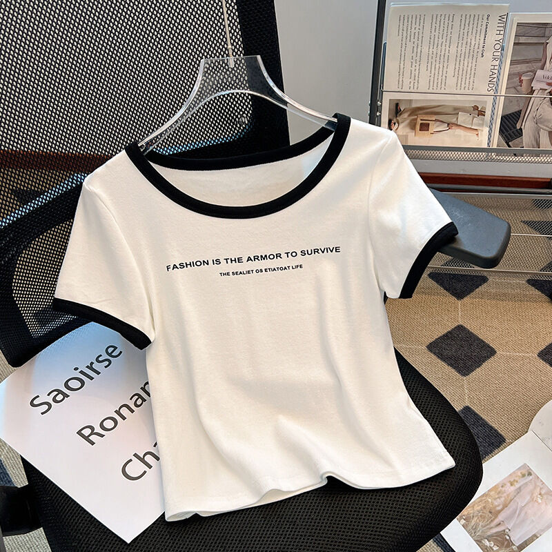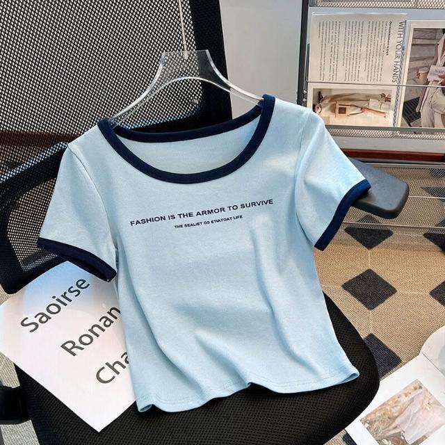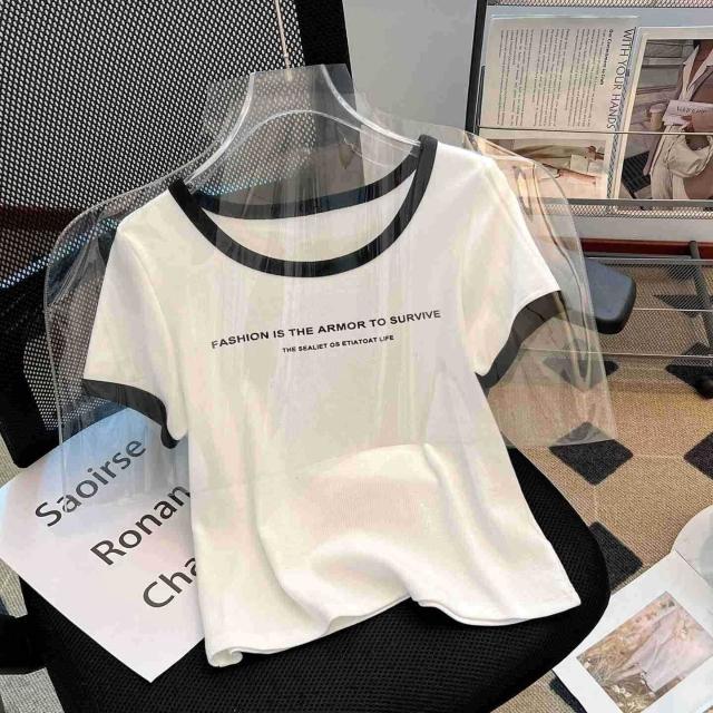 木槿衣坊 奶藍色針織螺紋短袖 恤女短款2026初夏季新款獨特漂亮修緊身上衣 88
