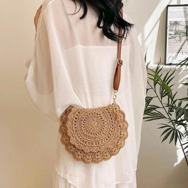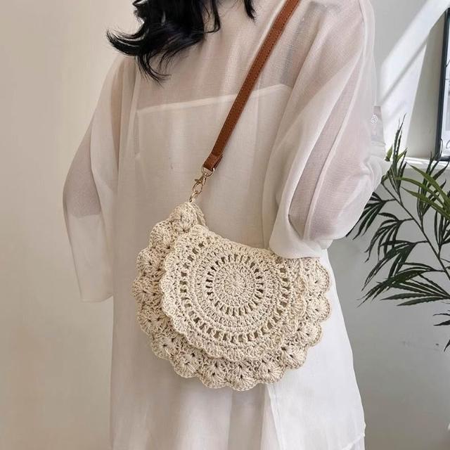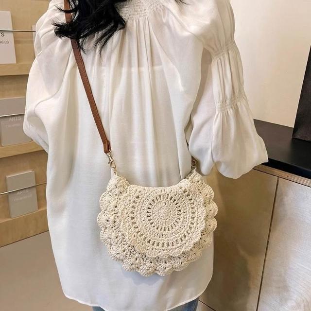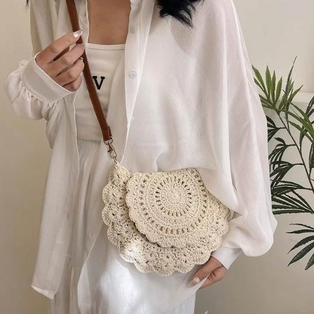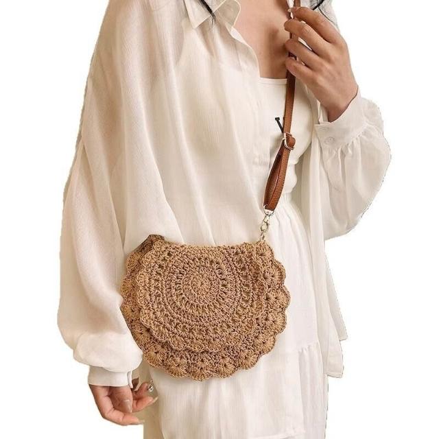 木槿衣坊 新款森系高顏值棉繩鉤織包輕便手機小包斜挎包法式單肩包編織包女 22