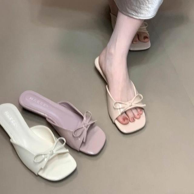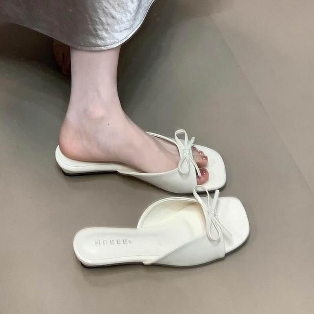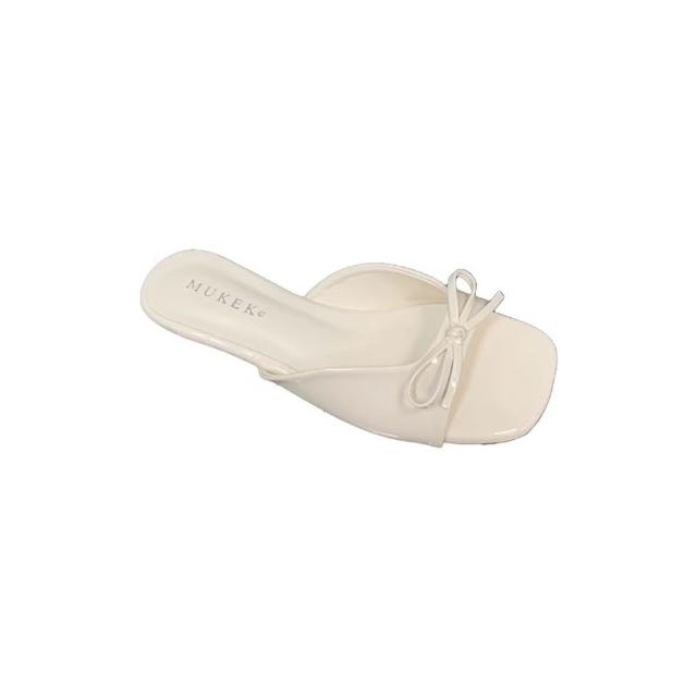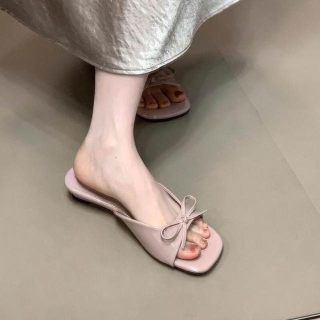 木槿衣坊 法式溫柔蝴蝶結一字帶粗跟涼拖鞋女夏季外穿露趾配裙子氣質涼鞋子 7