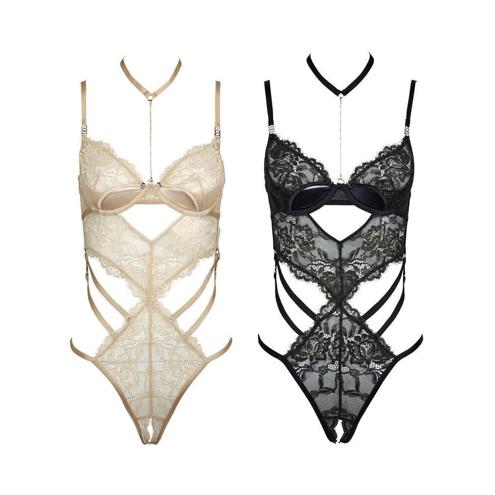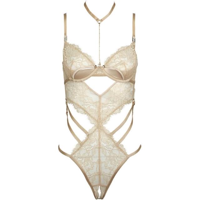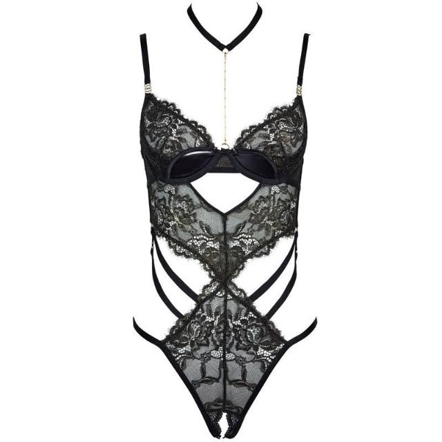 木槿衣坊 2847法式高級燙金蕾絲連體衣鋼圈聚攏透視镂空情趣掛脖內衣女 2 7