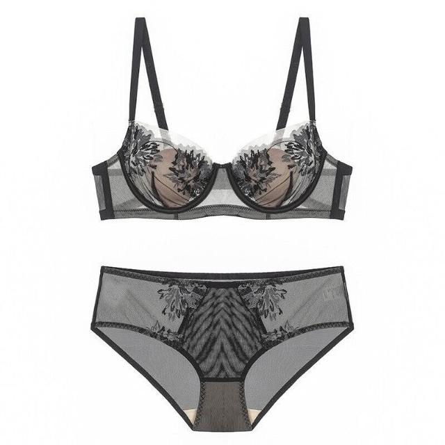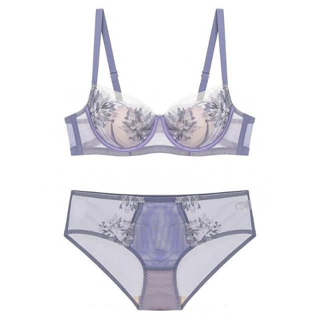 木槿衣坊 法式性感兔耳朵刺繡蕾絲透氣薄款內衣舒適大胸顯小防下垂文胸套裝 4