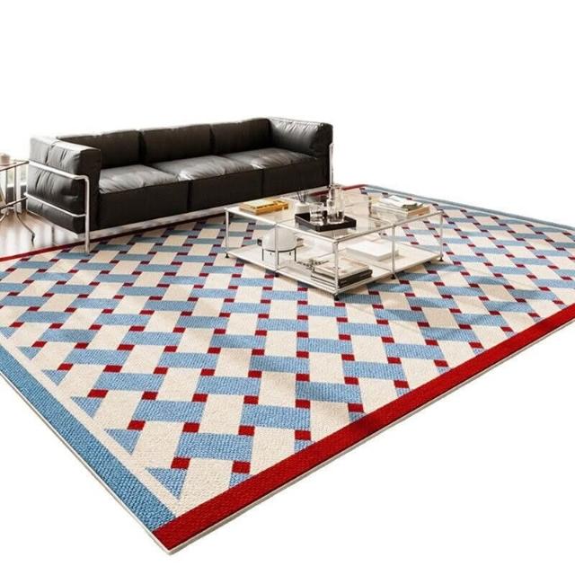 木槿衣坊 包豪斯藍色地毯客廳免洗可擦彩色多巴胺溫馨房間布置地墊臥室防水 38