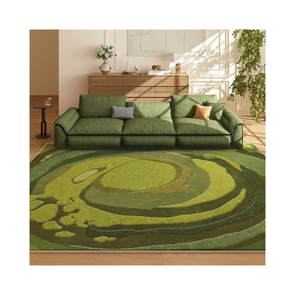 木槿衣坊 新品綠色客廳復古地墊中古風臥室防滑防水可擦免洗苔藓沙發茶幾毯 08