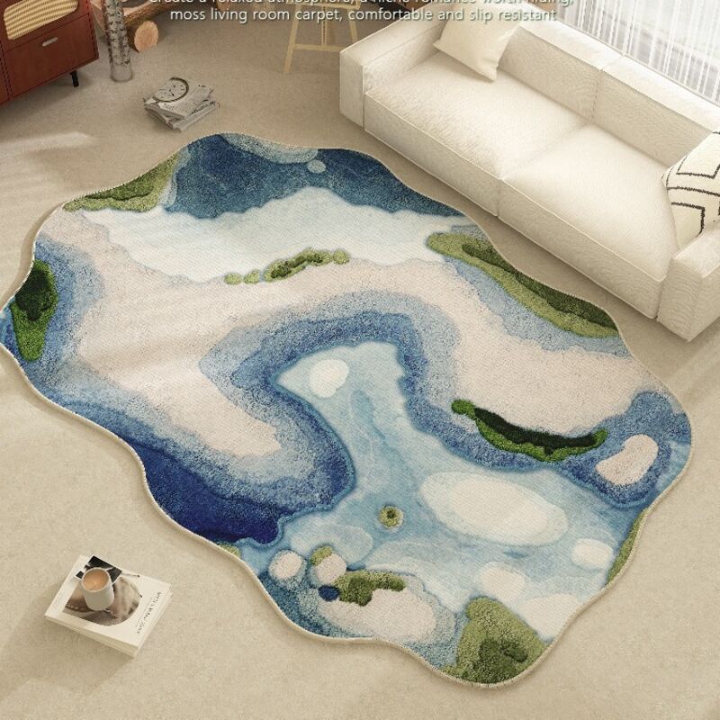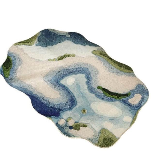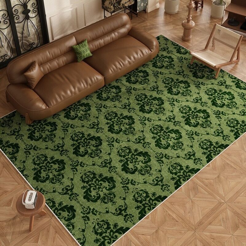 木槿衣坊 新品綠色客廳復古地墊中古風臥室防滑防水可擦免洗苔藓沙發茶幾毯 08