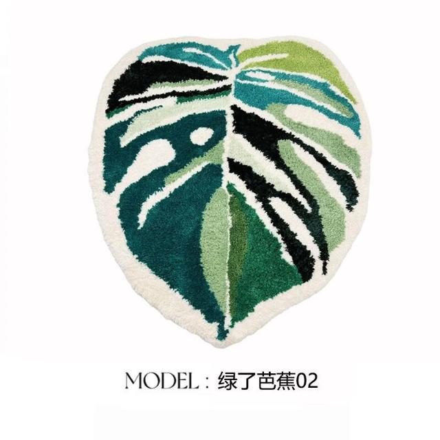 木槿衣坊 龜背竹地毯異形客廳臥室床邊毯綠色植物葉子加厚毛絨不規則飄窗墊 169