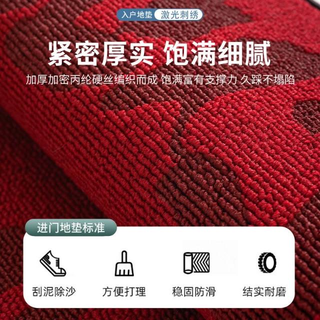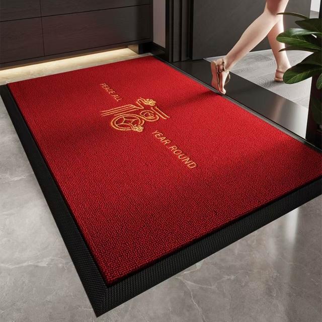 木槿衣坊 簡約復古紅喜慶高級入戶門地墊玄關房間門口耐臟防滑易打理腳墊 7
