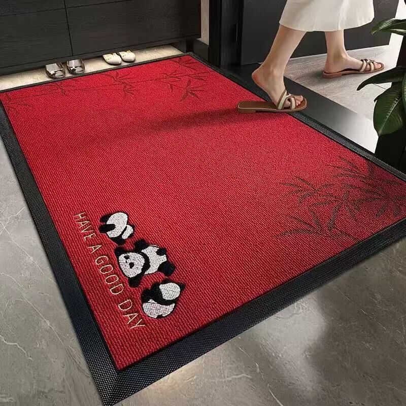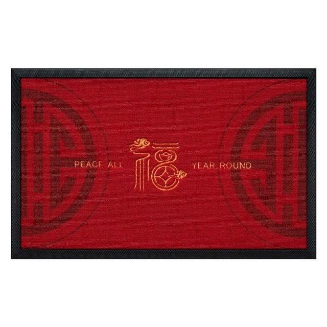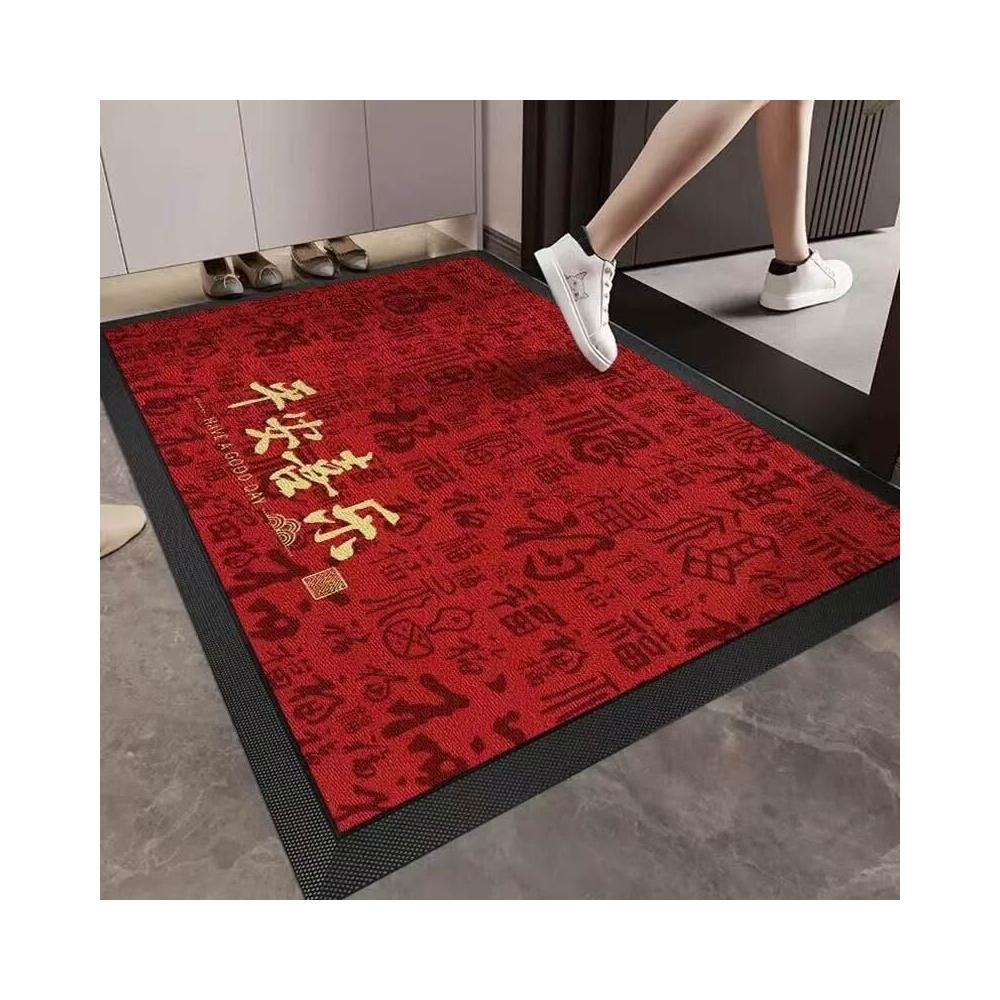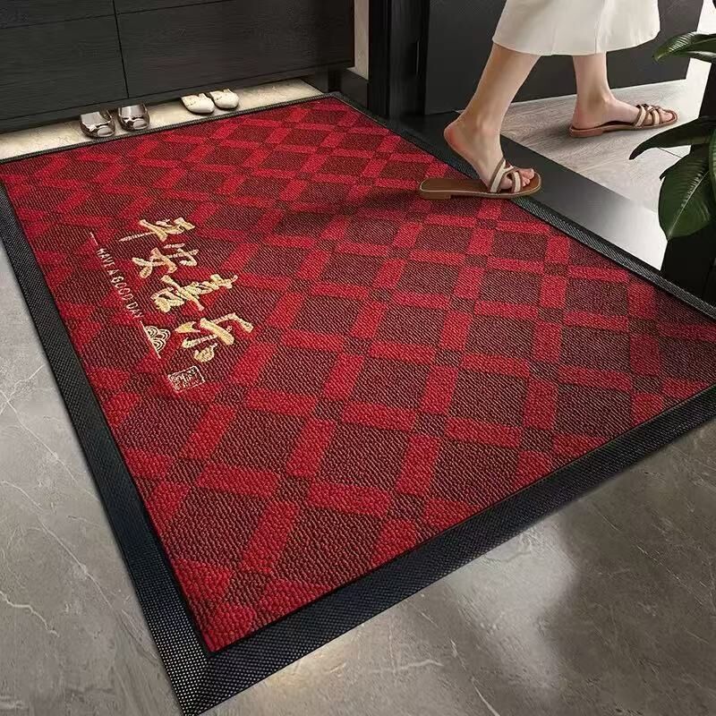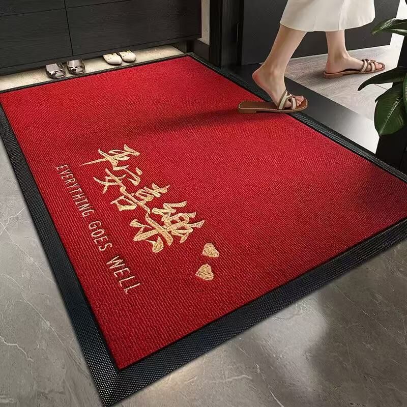 木槿衣坊 紅色高級感入戶門地墊別墅豪宅高端大門口進門耐臟免洗繡花腳墊 563