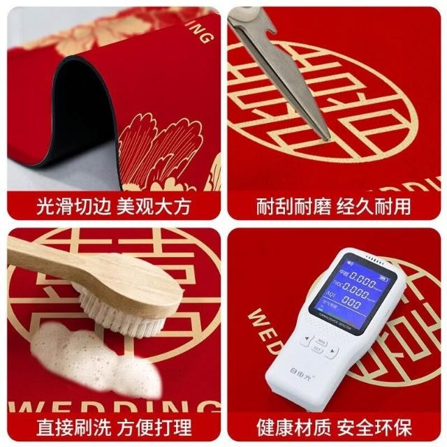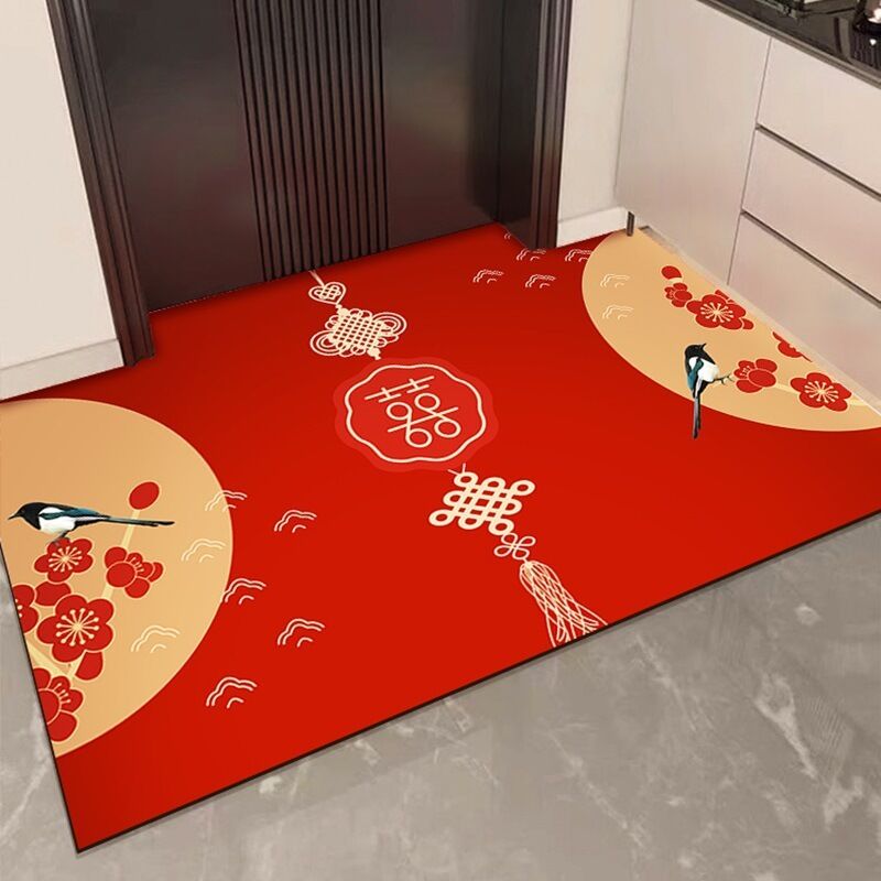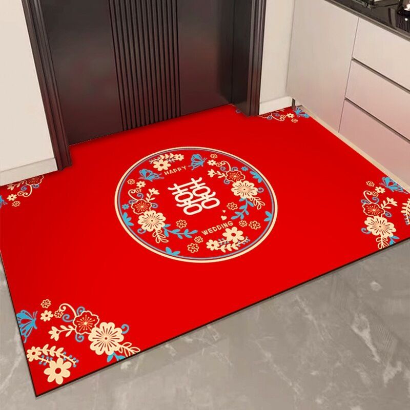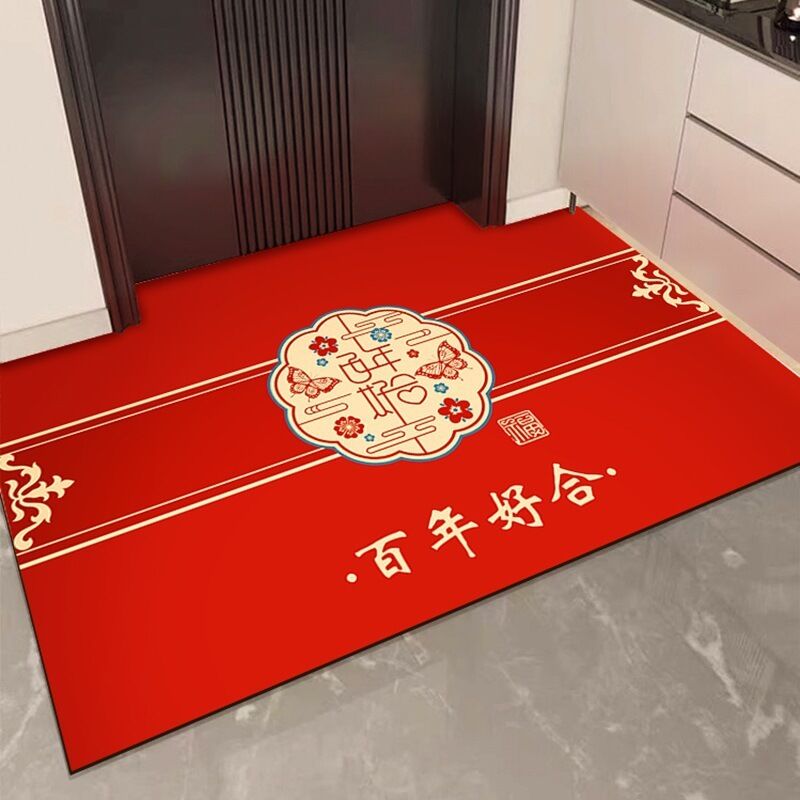 木槿衣坊 喜字結婚喜慶矽藻泥入戶門地墊婚房門口進門家用腳墊入戶紅色地毯 9