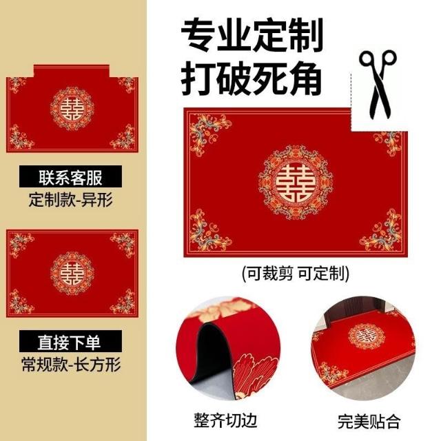 木槿衣坊 喜字結婚喜慶矽藻泥入戶門地墊婚房門口進門家用腳墊入戶紅色地毯 9