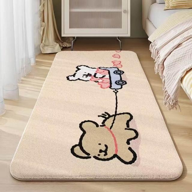 木槿衣坊 卡通線條小狗床邊毯臥室仿羊絨加厚地毯隔涼毛絨可愛少女房間地墊 365