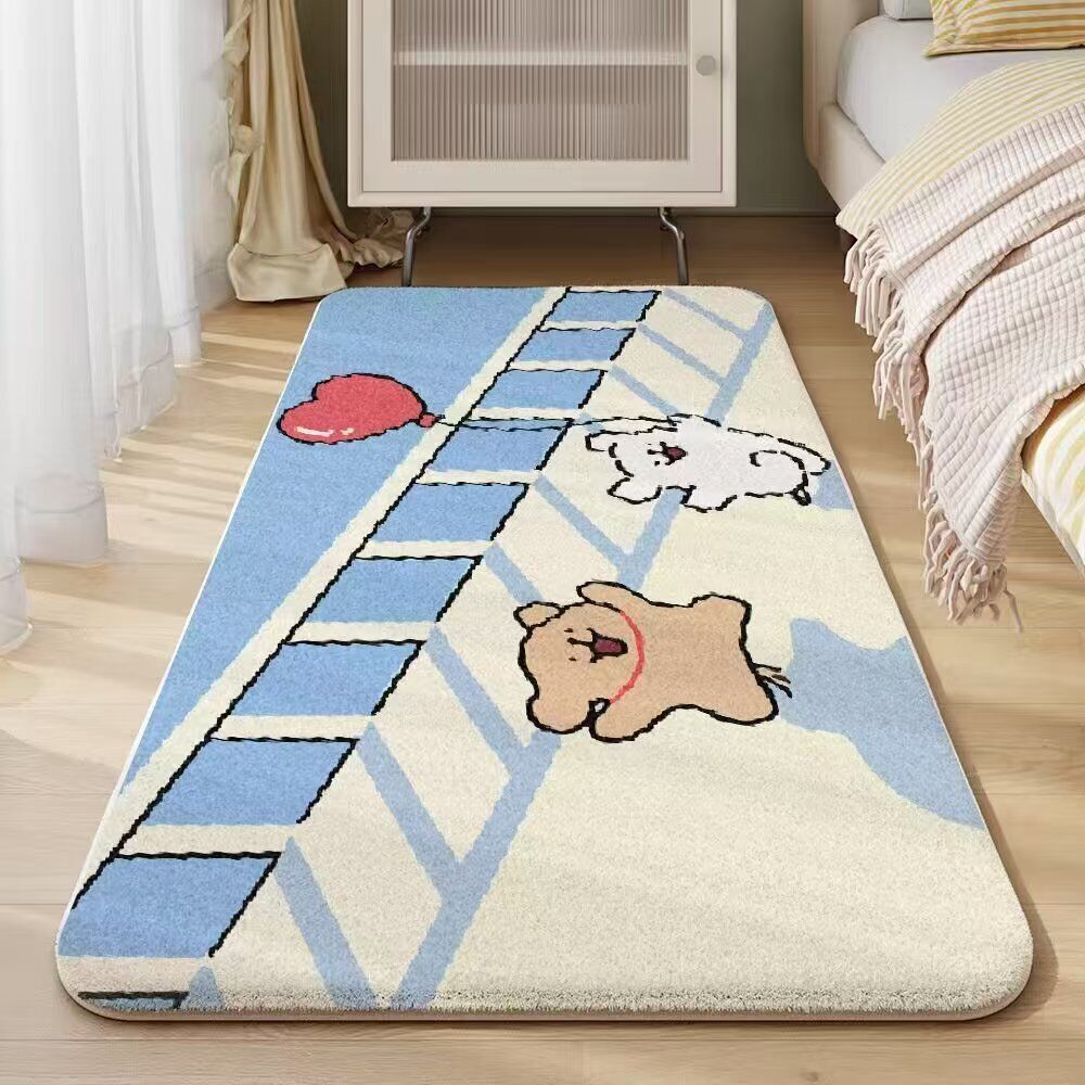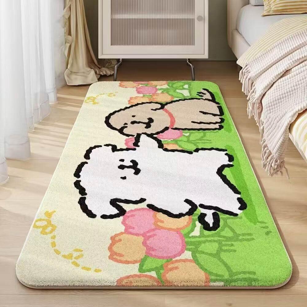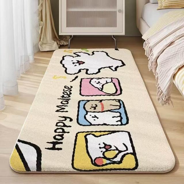 木槿衣坊 卡通線條小狗床邊毯臥室仿羊絨加厚地毯隔涼毛絨可愛少女房間地墊 365