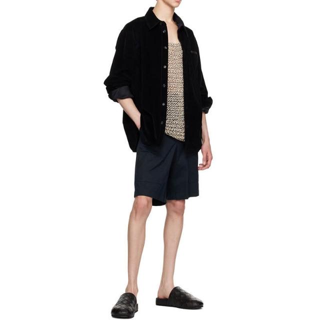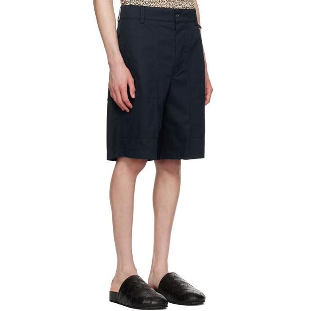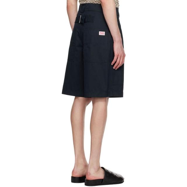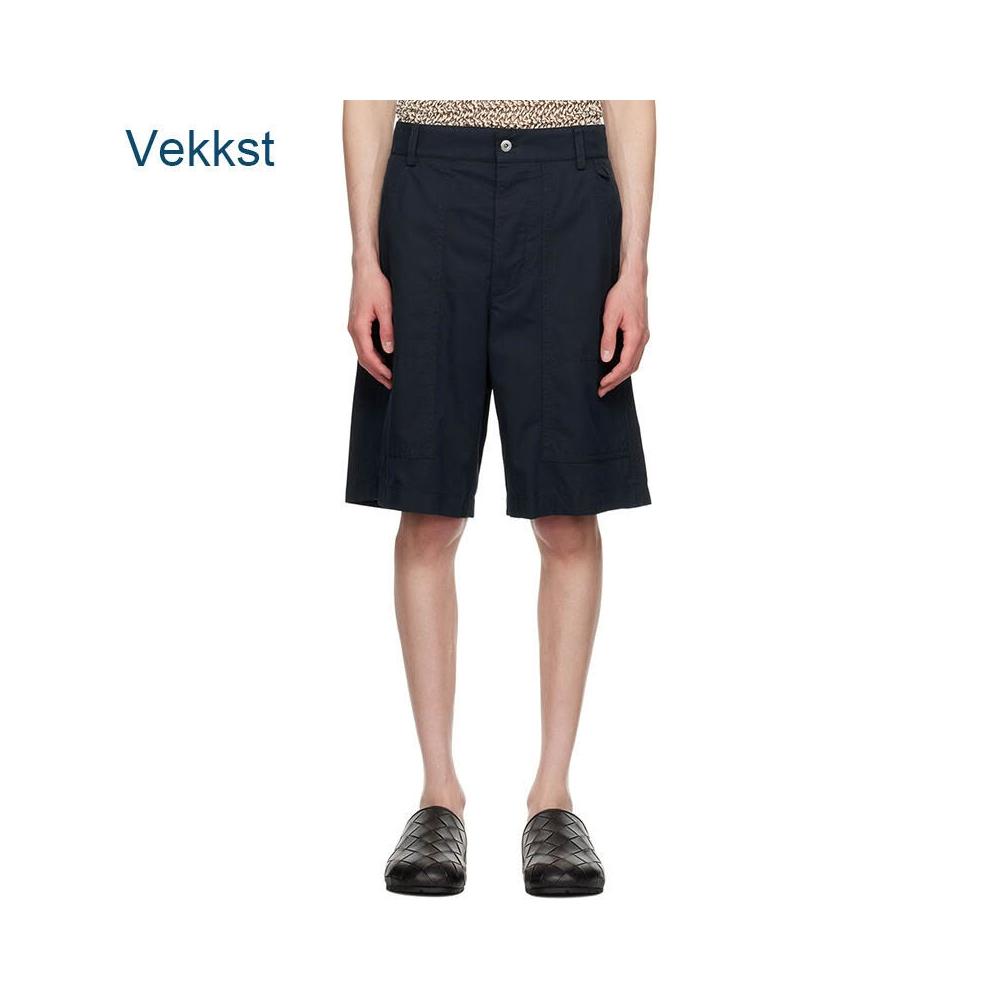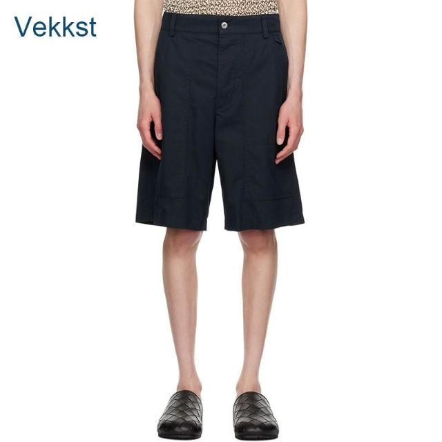 木槿衣坊 潮牌男裝 復古工裝風藏青短褲男夏季寬松闊腿五分褲明線口袋休閑 128