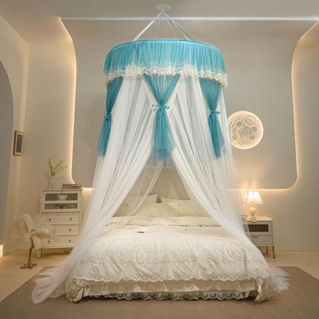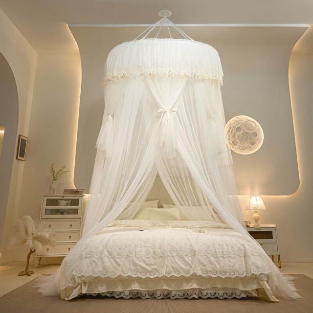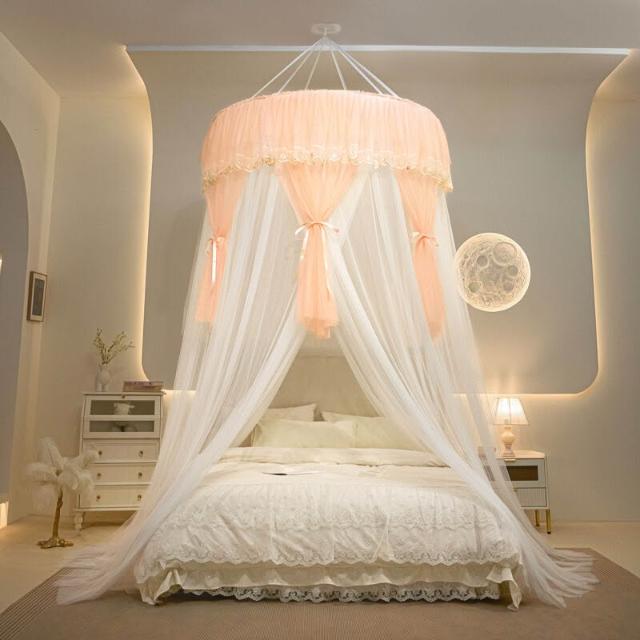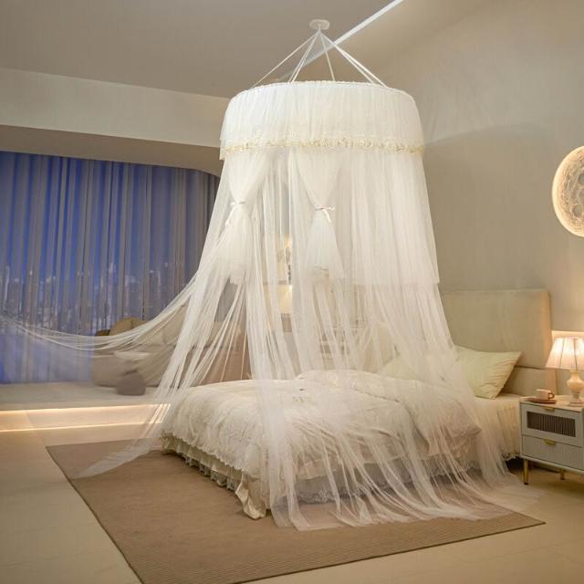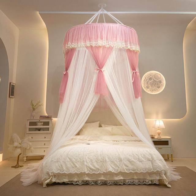 木槿衣坊 新款加大圓頂蚊帳吊頂天花板吸頂免安裝吊掛式臥室大床歐式蚊帳 1