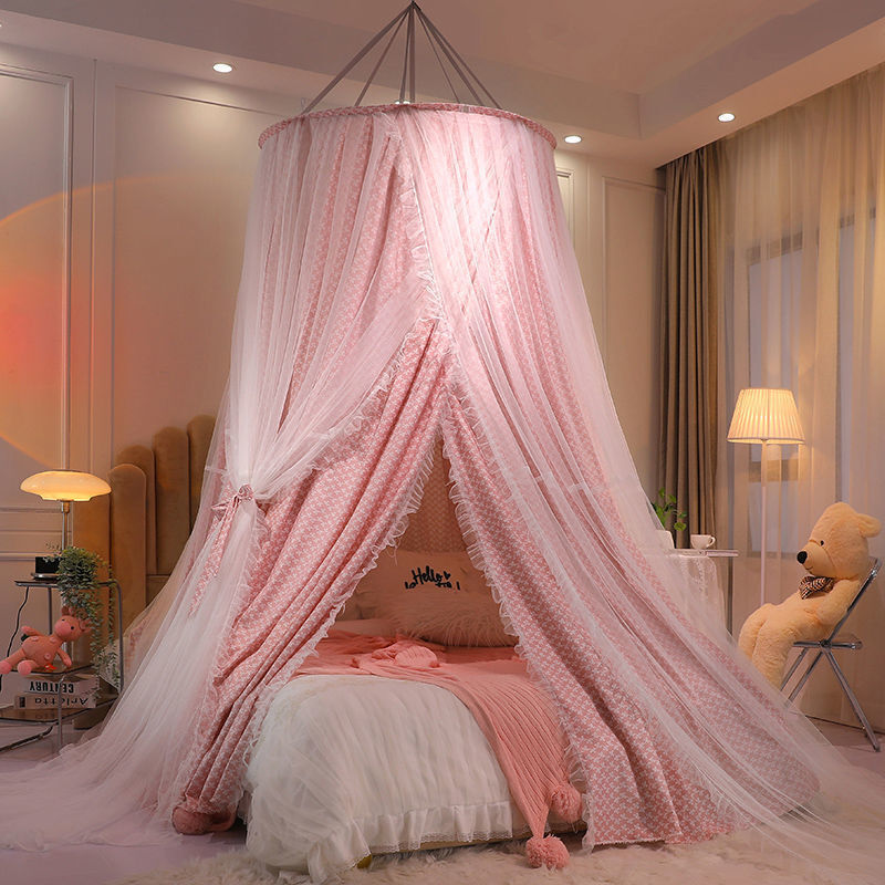 木槿衣坊 蚊帳 吊頂防塵遮光圓頂風吊掛式家用床簾一體式床幔免安裝代發 1 0