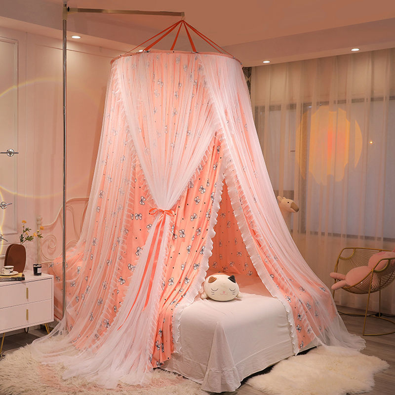 木槿衣坊 蚊帳 吊頂防塵遮光圓頂風吊掛式家用床簾一體式床幔免安裝代發 1 0