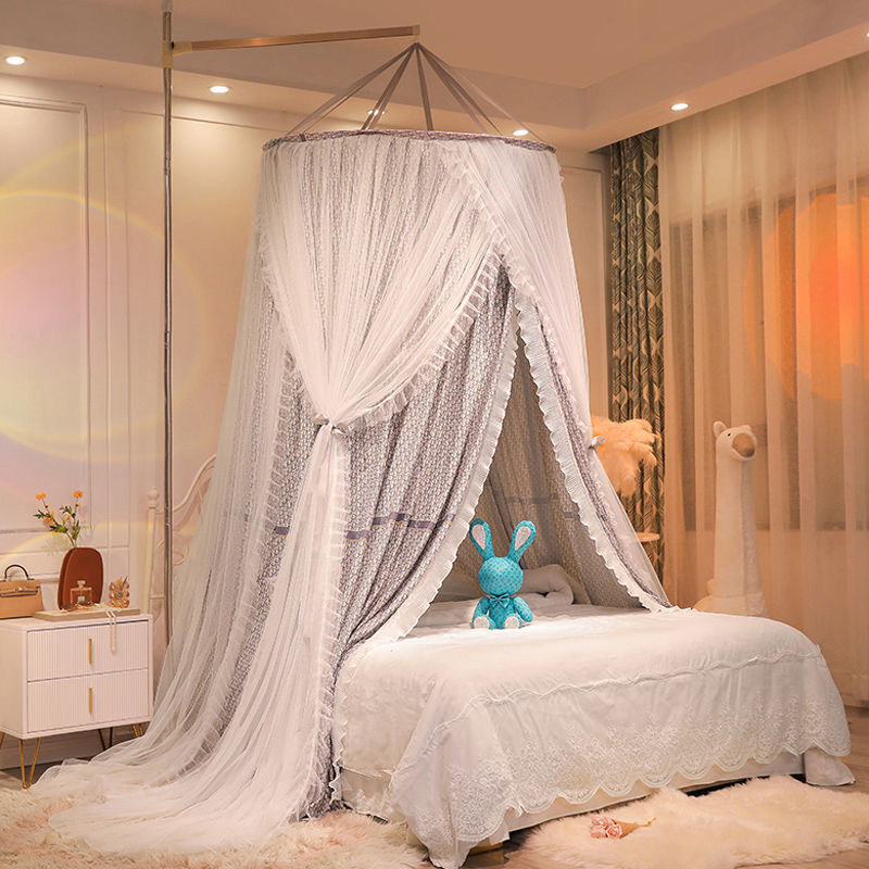 木槿衣坊 蚊帳 吊頂防塵遮光圓頂風吊掛式家用床簾一體式床幔免安裝代發 1 0