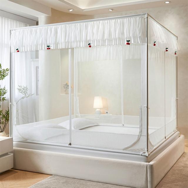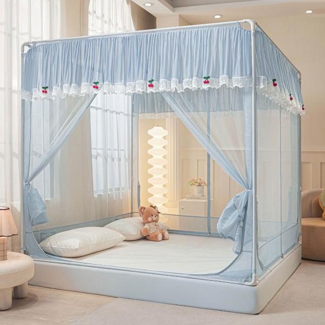 木槿衣坊 新款坐床防摔蚊帳兒童防掉床全底回底床笠式三開門拉鏈方帳家用 06