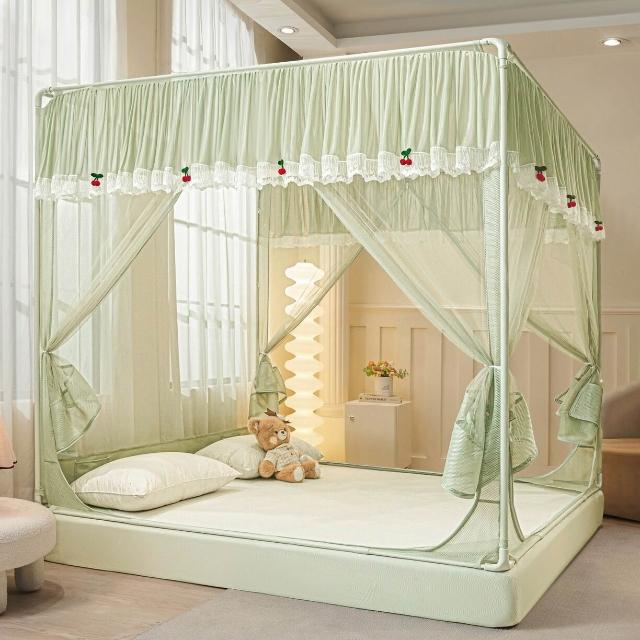 木槿衣坊 新款坐床防摔蚊帳兒童防掉床全底回底床笠式三開門拉鏈方帳家用 06