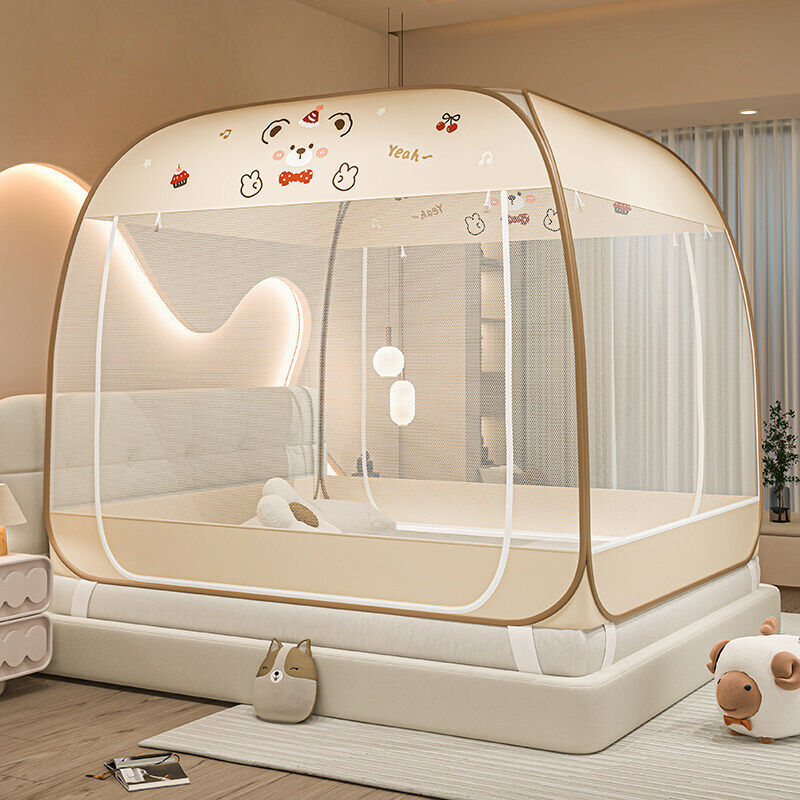 木槿衣坊 免安裝蒙古包蚊帳家用臥室兒童防摔嬰兒1米床三開門1米35全底加密 37