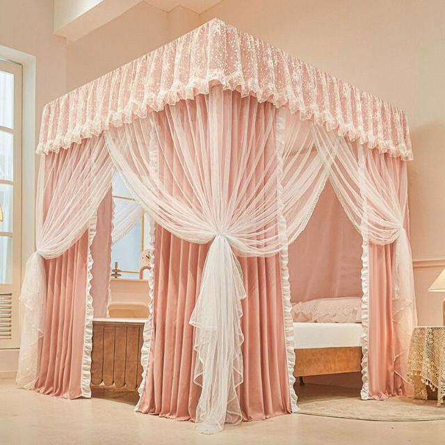 木槿衣坊 蚊帳新款擋風床簾宮廷一體式家用床幔雙層遮光開門防塵公主落地 03