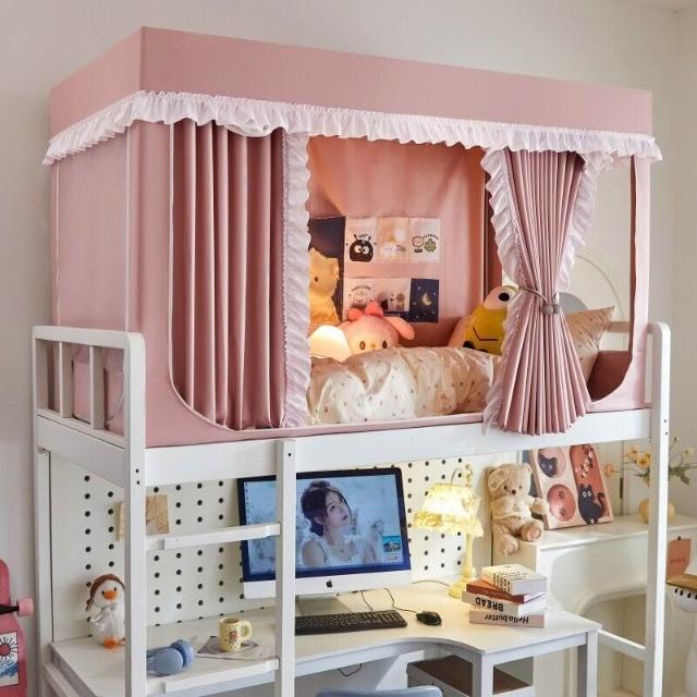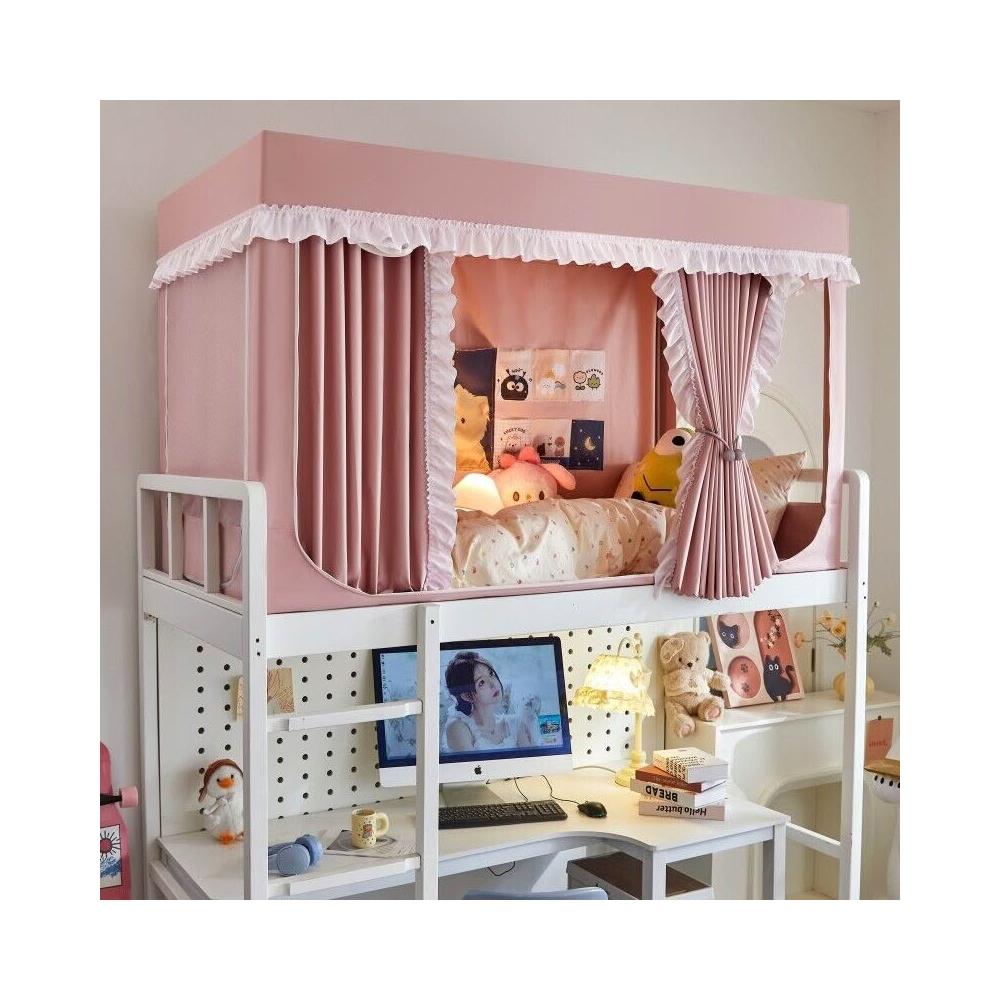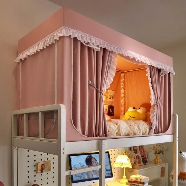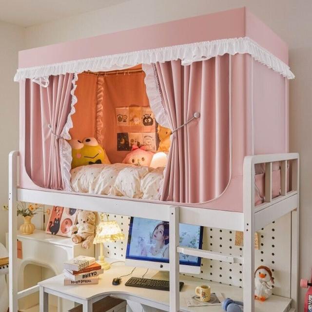木槿衣坊 類學生宿舍床簾一體蚊帳純色花邊物理強遮光環保遮光上下鋪床幔 9