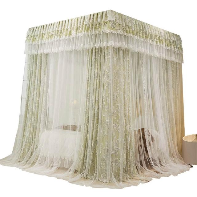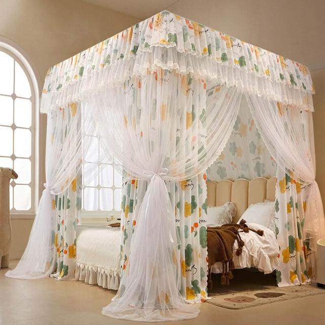 木槿衣坊 新款床幔雙層三開門落地宮廷蚊帳遮光擋風床簾加粗不銹鋼支架 6