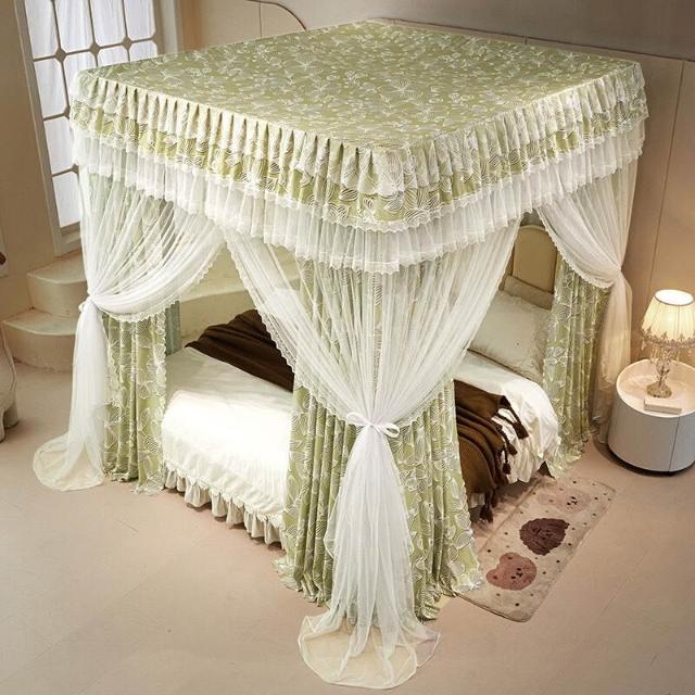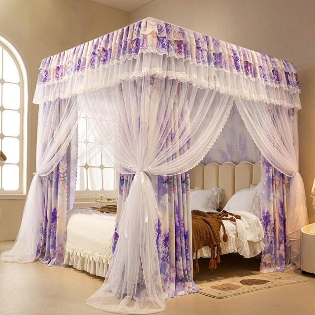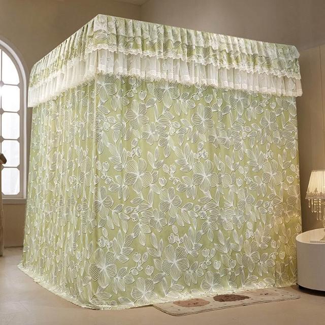木槿衣坊 新款床幔雙層三開門落地宮廷蚊帳遮光擋風床簾加粗不銹鋼支架 6