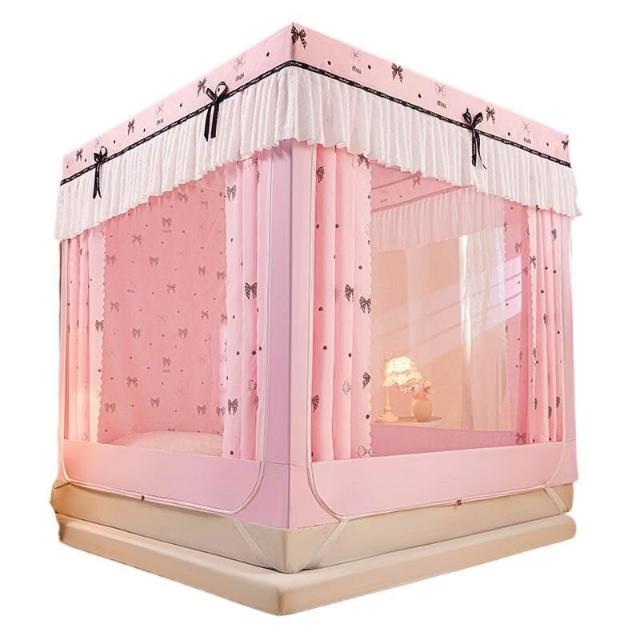 木槿衣坊 坐床式蚊帳三開門床簾款拉鏈一體式家用兒童防摔蚊帳臥室防塵遮光 4