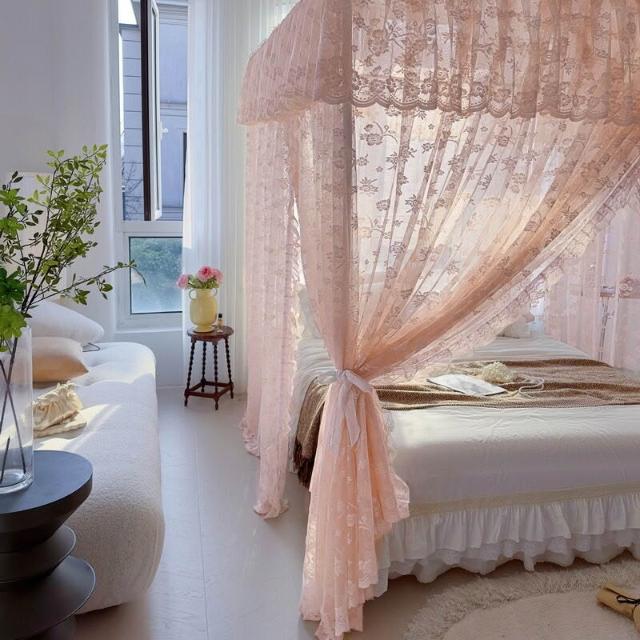 木槿衣坊 法式蕾絲蚊帳家用落地式宮廷三開門公主風臥室架子床防蚊床幔支架 9