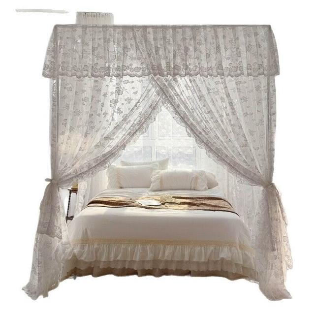 木槿衣坊 法式蕾絲蚊帳家用落地式宮廷三開門公主風臥室架子床防蚊床幔支架 9