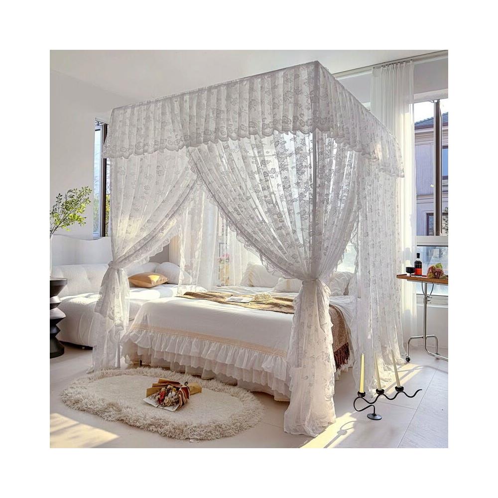 木槿衣坊 法式蕾絲蚊帳家用落地式宮廷三開門公主風臥室架子床防蚊床幔支架 9