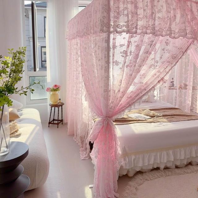 木槿衣坊 法式蕾絲蚊帳家用落地式宮廷三開門公主風臥室架子床防蚊床幔支架 9