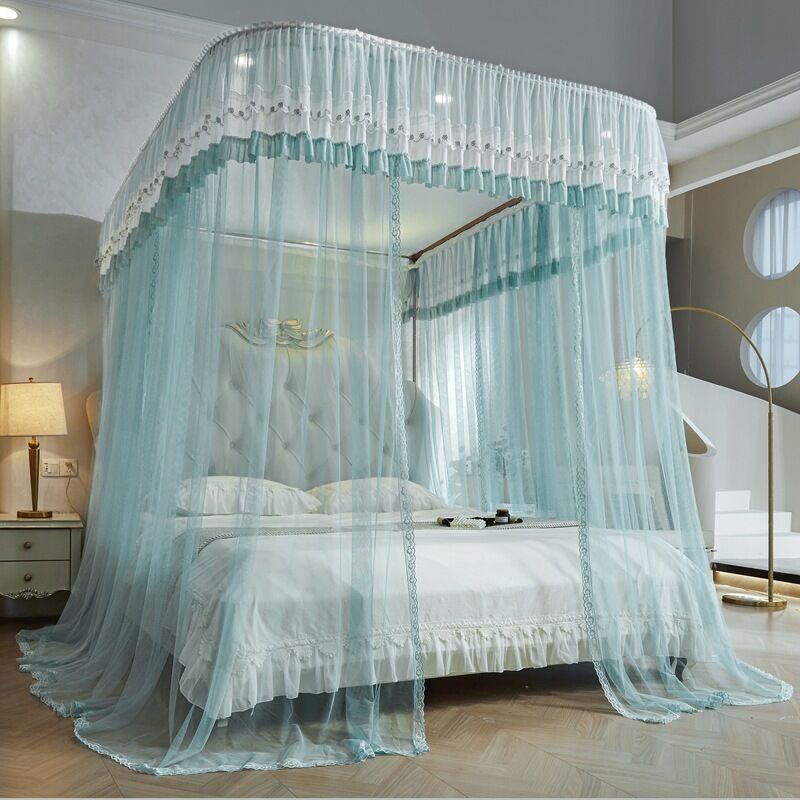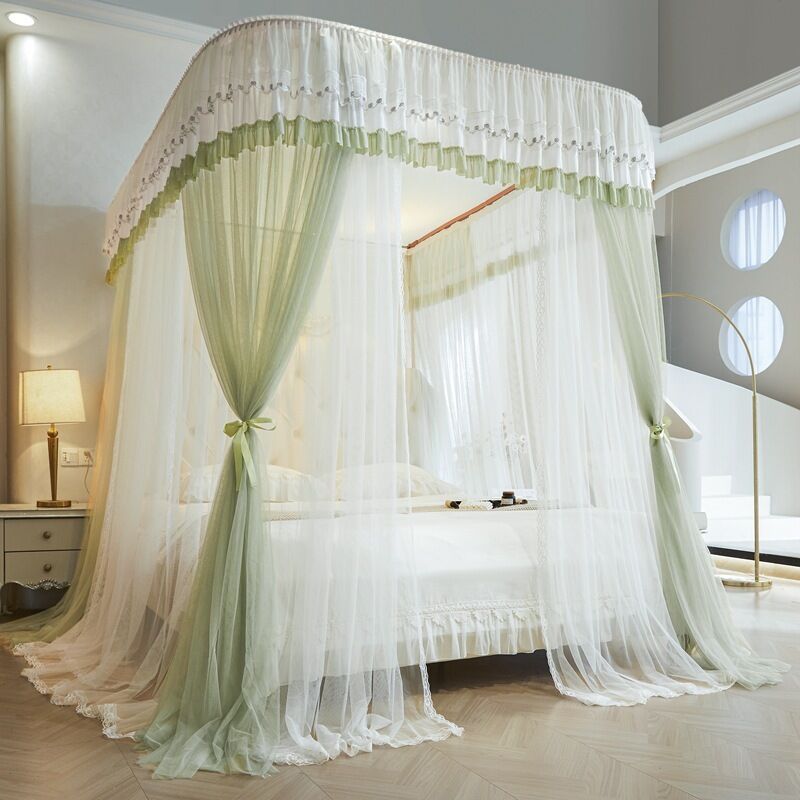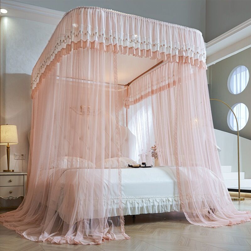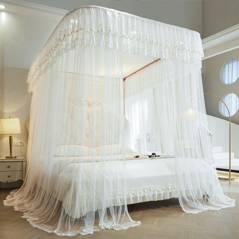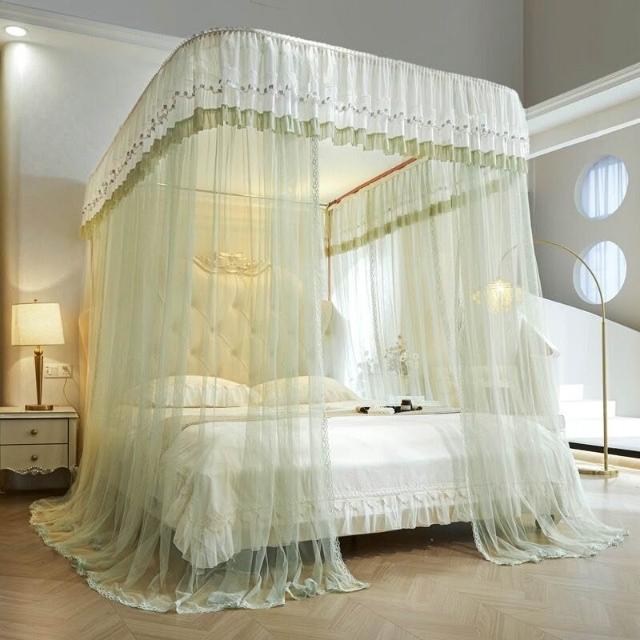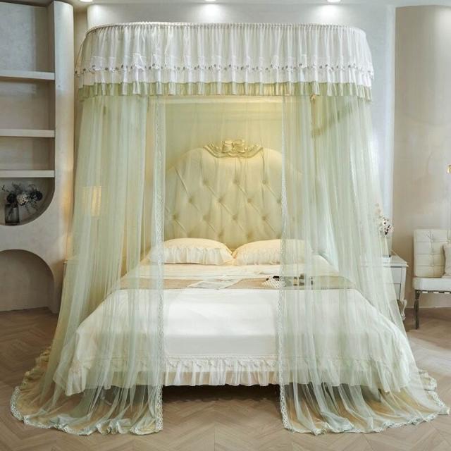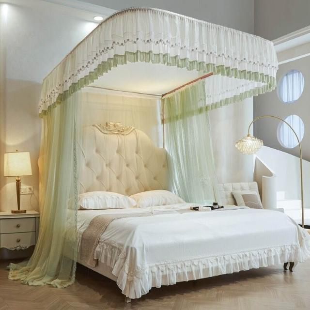 木槿衣坊 新款 型軌道滑輪導軌蚊帳雙層紗加密公主風宮廷落地家用臥室床幔 749