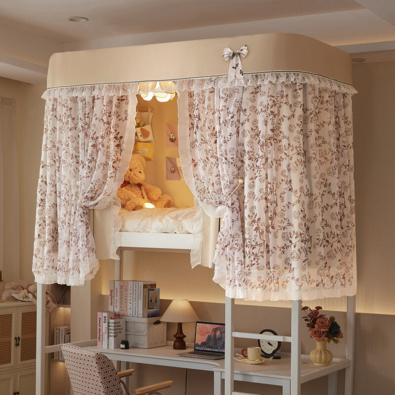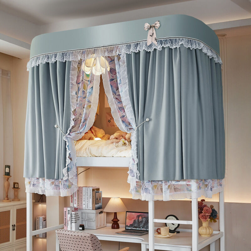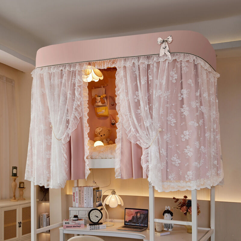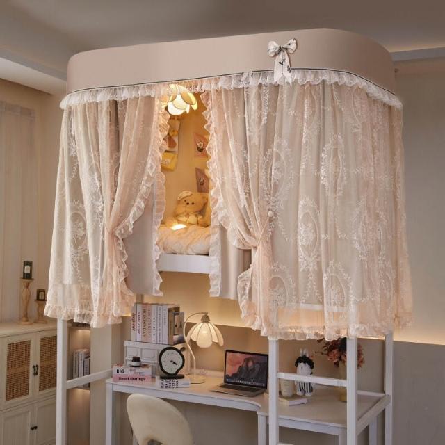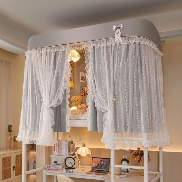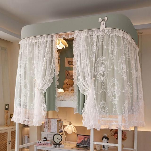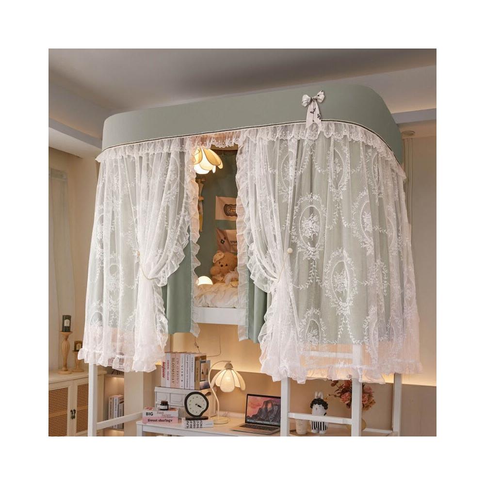 木槿衣坊 2025新款蕾絲花邊學生宿舍蚊帳強遮光床簾 型雙導軌公主風床幔紗 30