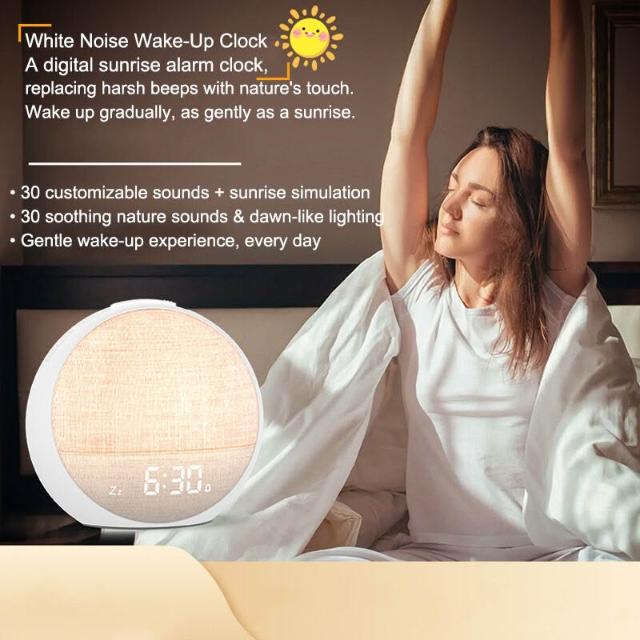 木槿衣坊 2025新款白噪音睡眠鬧鐘伴睡氛圍燈七彩燈光模擬日光喚醒鬧鐘 8