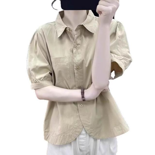 木槿衣坊 法式純棉小個子燈籠袖短袖襯衫女減齡上衣新款氣質顯瘦襯衣上衣夏 28