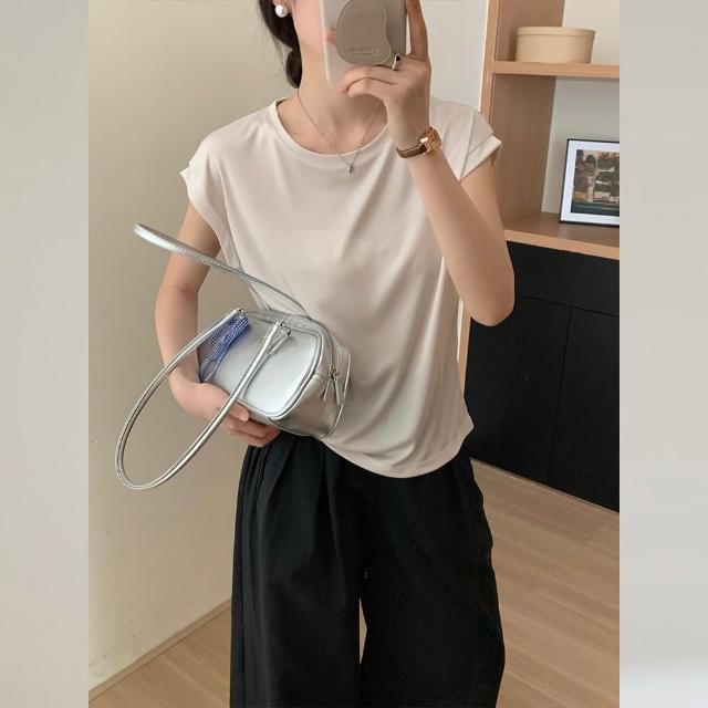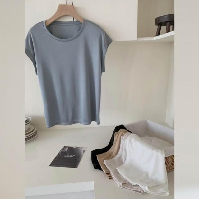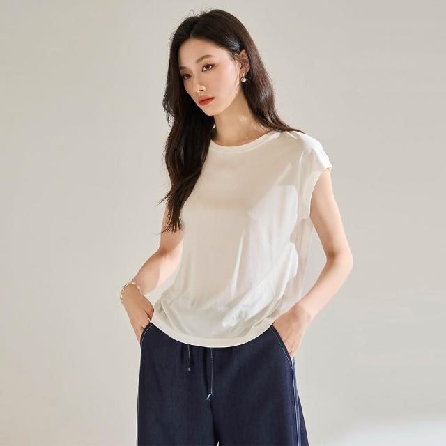 木槿衣坊 夏季新款冷空調醋酸 清涼絲滑短袖 恤衫女蓋袖子上衣18754白色 686