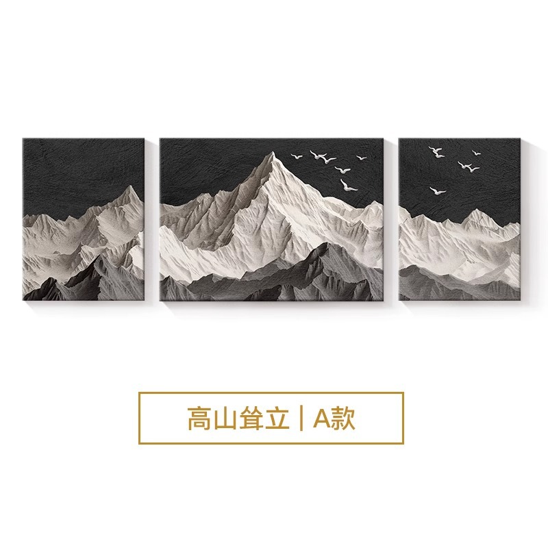 木槿衣坊 新款背有靠山客廳裝飾畫輕奢高檔大氣三聯壁畫沙發背景墻掛畫 496