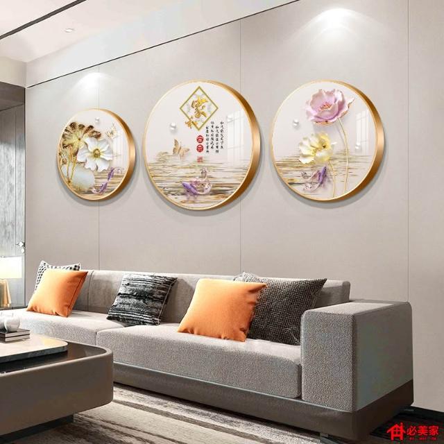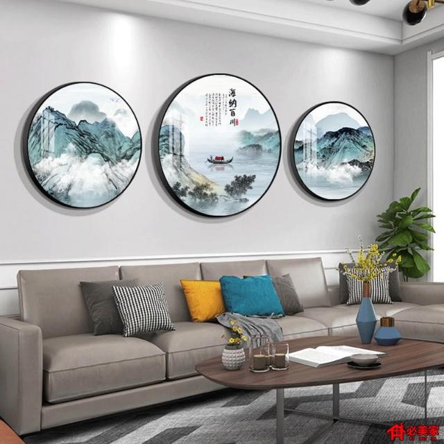 木槿衣坊 新中式輕奢高級感家和萬事興圓形山水客廳裝飾畫沙發背景墻壁掛畫 7