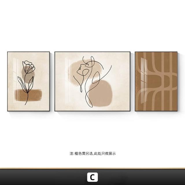 木槿衣坊 侘寂風客廳裝飾畫簡約抽象線條藝術人物畫三聯畫沙發背景墻壁掛畫 1