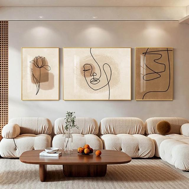 木槿衣坊 侘寂風客廳裝飾畫簡約抽象線條藝術人物畫三聯畫沙發背景墻壁掛畫 1