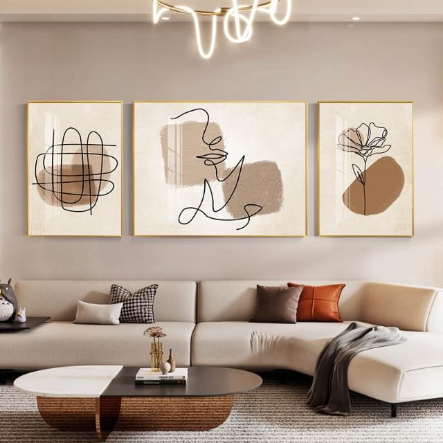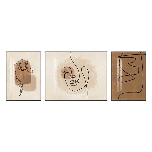 木槿衣坊 侘寂風客廳裝飾畫簡約抽象線條藝術人物畫三聯畫沙發背景墻壁掛畫 1