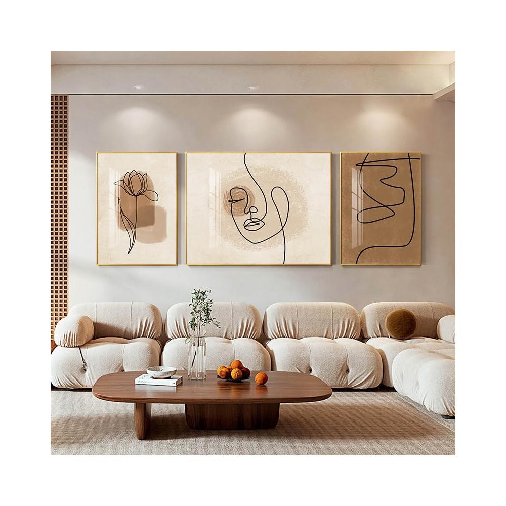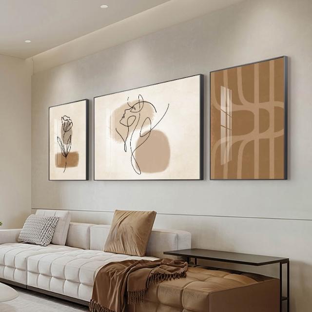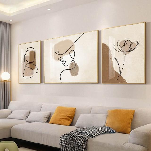 木槿衣坊 侘寂風客廳裝飾畫簡約抽象線條藝術人物畫三聯畫沙發背景墻壁掛畫 1