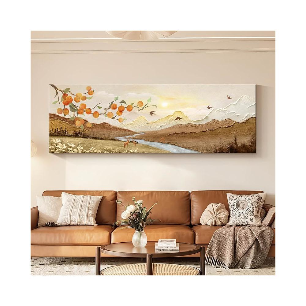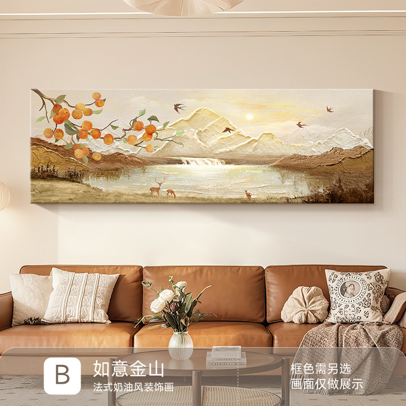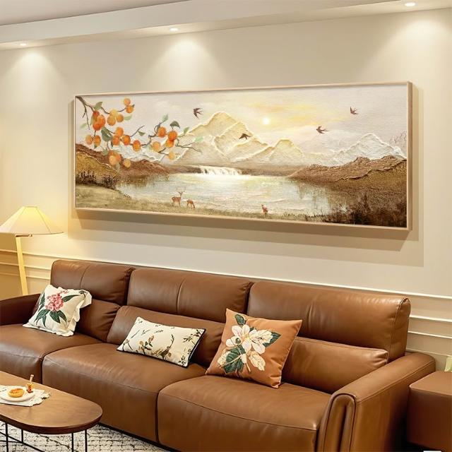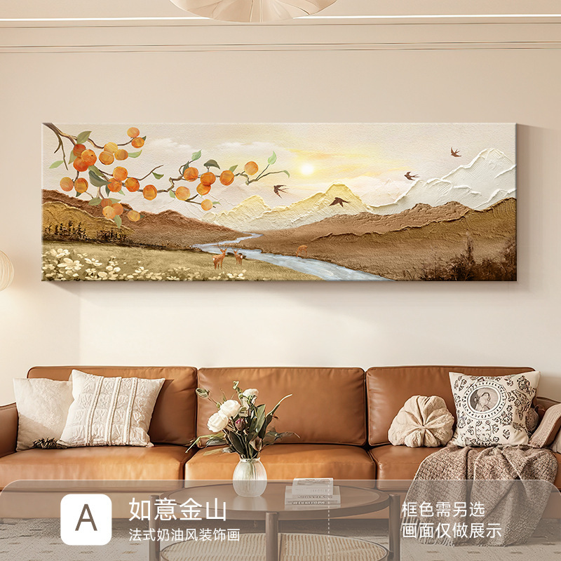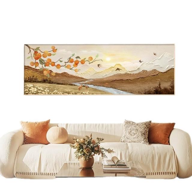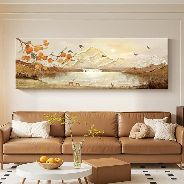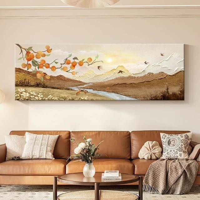 木槿衣坊 柿柿如意客廳裝飾畫奶油風背有靠山水畫沙發背景墻壁掛畫橫版 2 2
