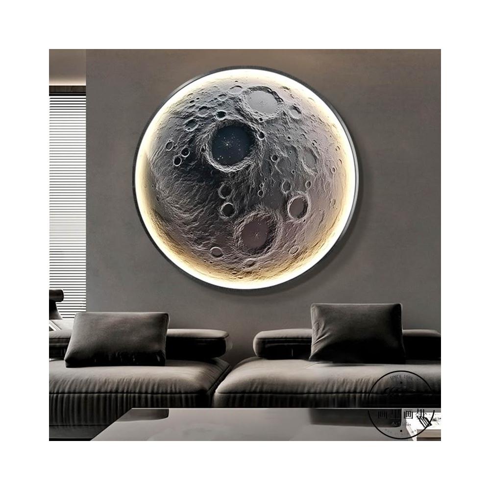 木槿衣坊 月球圓形裝飾畫玄關發光走廊主臥背景墻客廳 燈光畫床頭壁掛畫 3