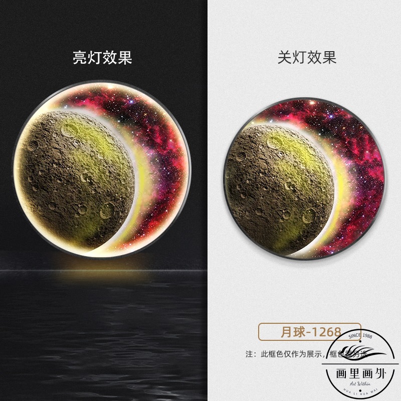 木槿衣坊 月球圓形裝飾畫玄關發光走廊主臥背景墻客廳 燈光畫床頭壁掛畫 3