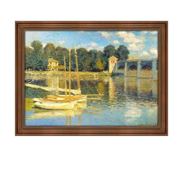 木槿衣坊 莫奈裝飾畫日出印象復古油畫花園美式掛畫睡蓮客廳玄關組合畫名畫 0
