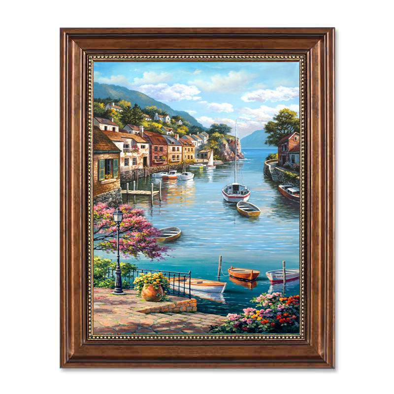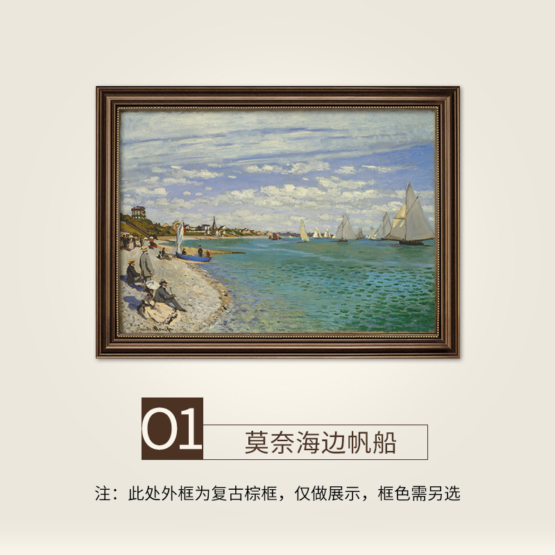 木槿衣坊 莫奈裝飾畫日出印象復古油畫花園美式掛畫睡蓮客廳玄關組合畫名畫 0